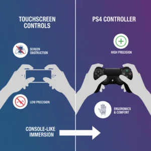 Touchscreen gaming is great—but using a physical controller is a different league. Here’s a comparison: